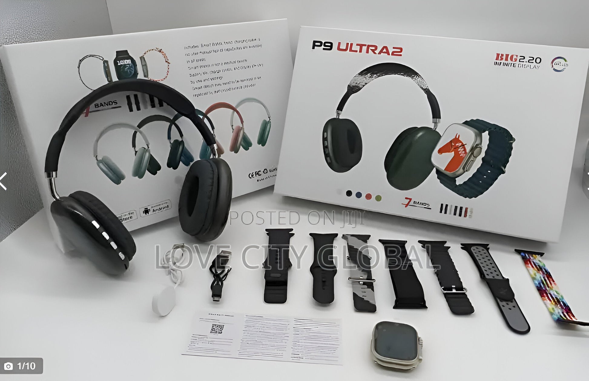 Experience the perfect blend of sound and smart technology with the P9 Ultra 2 Headphones and Smartwatch combo. With a sleek, ergonomic design and long battery life, they ensure all-day comfort.